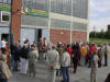 Knapp 60 Teilnehmer fanden sich am ehemaligen Bergwerk Recklinghausen II an der Karlstraße 75 im Stadtteil Hochlarmark ein. Zentrales Ausstellungsstück ist die im Jahre 1964 durch die Eisenhütte Prinz-Rudolf in Dülmen gebaute dampfbetriebene Fördermaschine. Sie ist weltweit die letzte ihrer Art, welche für den Einsatz in einer Zeche – hier am ehemaligen Konrad Ende Schacht – gebaut wurde. Ein gigantischer Zeitzeuge der Technik so fanden wir. Diese Dampfmaschine steht seit 1988 – direkt nach ihrer Außerbetriebnahme unter Denkmalschutz. Der Geschäftsführer des o.g. Vereines: Herr Dipl. Ing. Henry Kügler war so freundlich uns wissenswertes zur Fördermaschine und zur Geschichte des Bergbaus in Hochlarmark zu vermitteln. Bis zur Fusion mit dem Bergwerk Ewald im Jahre 1974 wurden hier am Konrad – Ende – Schacht die Kohlenwagen gezogen. Mit der Förderumstellung wurden die Kohlen dann über Bänder zum Ewald – Schacht 7 transportiert. Der Schacht diente dann noch bis zur Einstellung der steilen und halbsteilen Gewinnung im Baufeld RE II der Seilfahrt und des Materialtransportes. Das Fördergerüst des Schachtes IV wurde 1963 von der GHH - Oberhausen als deutsches Strebengerüst errichtet. Es ist einmalig im Ruhrgebiet, wegen der vier nebeneinander laufenden Seilscheiben für Doppelförderung. Mit der benachbarten Dreieckssiedlung besitzt das Fördergerüst städtebauliche Bedeutung und hat für mich den Charakter eines Wahrzeichens. Das ca. 3300 m² große Gelände mit dem Schachtgerüst und dem Fördermaschinengebäude ist vom Förderverein für Bergbau – und Industriegeschichte RE e.V. gekauft worden. Dafür ist eine sich selber tragende Bewirtschaftung Voraussetzung. Die Eigentümer erbringen den Nachweis der Wirtschaftlichkeit durch z.B. Vermietungen: an den VTG (Vestische Tanzsport-Gemeinschaft) und an die BSG- Bürgerschützengilde Hochlarmark sowie durch Einnahmen der Mobilfunkantenne im Schachtgerüst und Einnahmen aus der Vermietung der Räumlichkeiten zu den verschiedensten Anlässen. Wir unternahmen die Begehung wegen der Anzahl der Teilnehmer in zwei Gruppen. Die jeweils andere Gruppe machte bei glücklicherweise trockenem Wetter einen Rundgang zur im Bau befindlichen Drachenbrücke. Diese Brücke verbindet künftig den Stadtteilpark Hochlarmark mit den benachbarten Halde Hoppenbruch und Hoheward. Nun sollte das Essen und Trinken nicht zu kurz kommen. Unser Grillteam: Achim Schüler, Heinz Jetten und H. Günter Sorger hatten alle Hände voll zu tun. Und - es hat wieder sehr gut geschmeckt - das Fleisch und das alkoholfreie Bier! Danke den helfenden Händen und an Herrn Kügler für die informative Führung. Bis zum nächsten Stammtisch ein herzliches Glück Auf. O.Weirich |