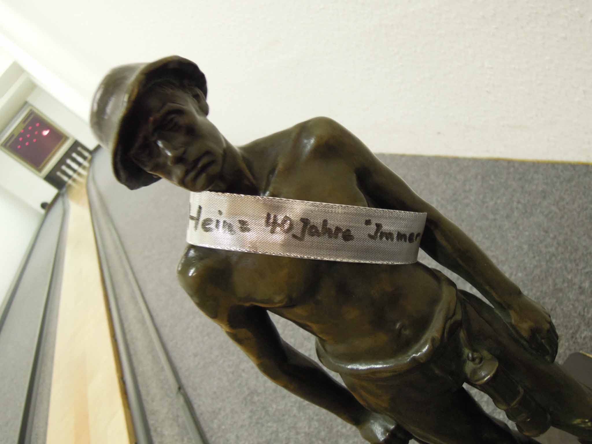 Siegbert dauerhaft an unseren Kegelbruder Heinz. |