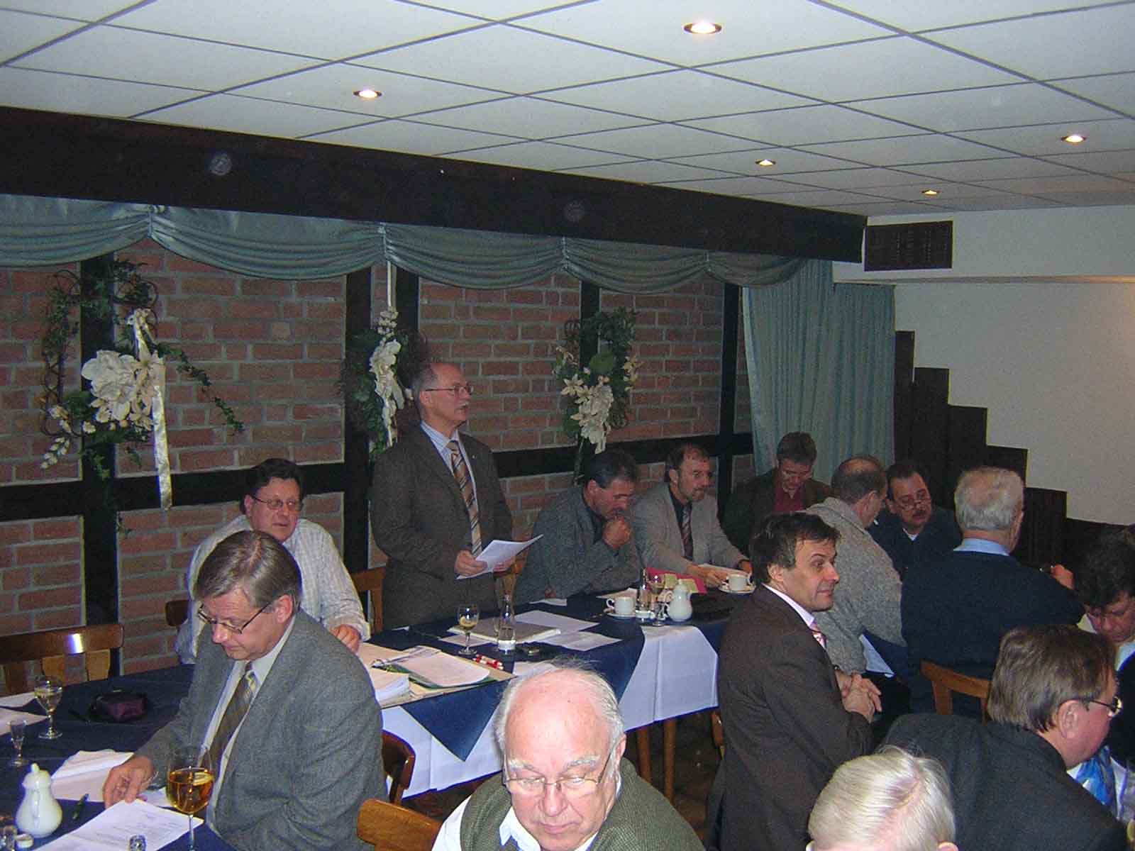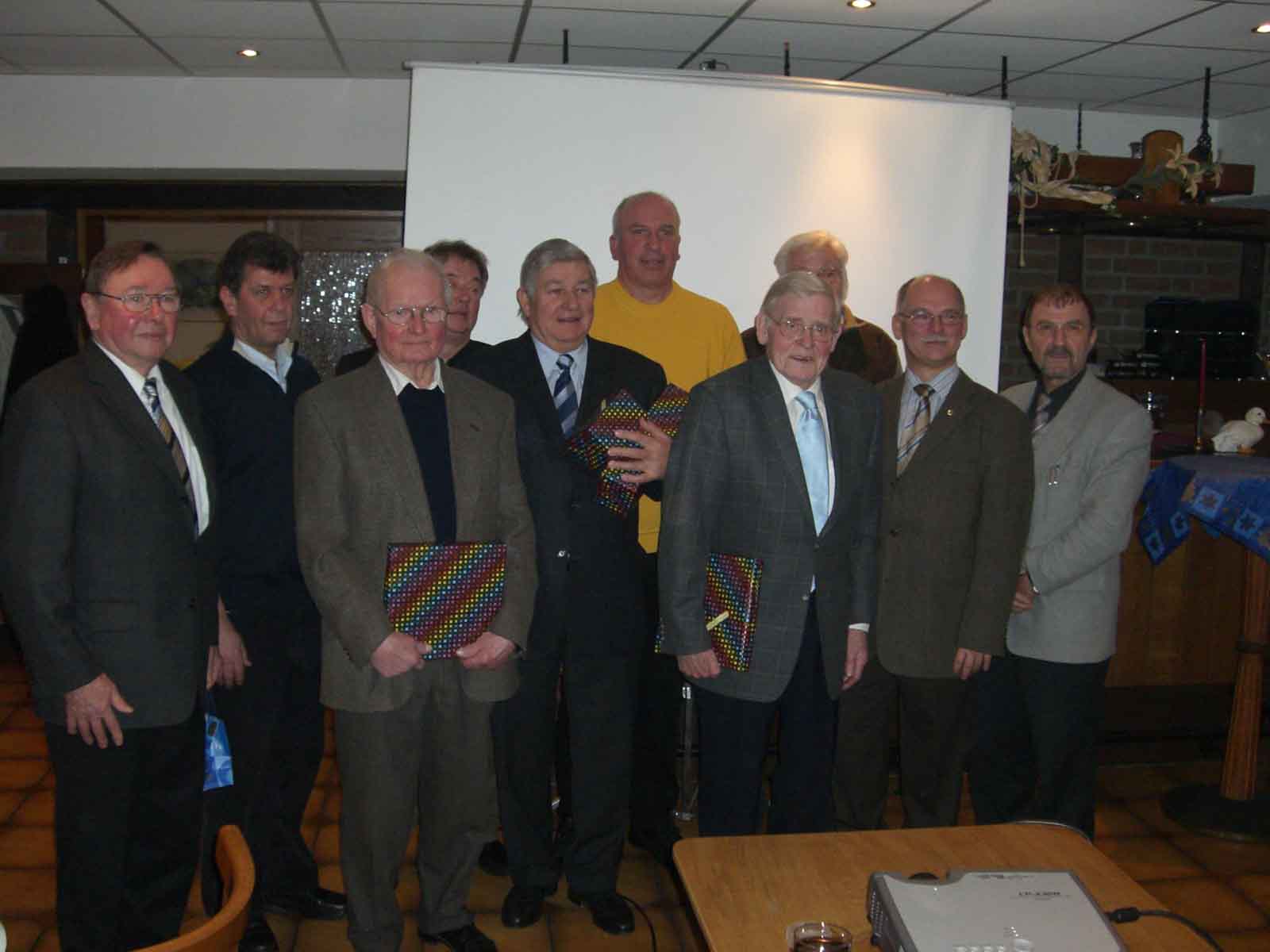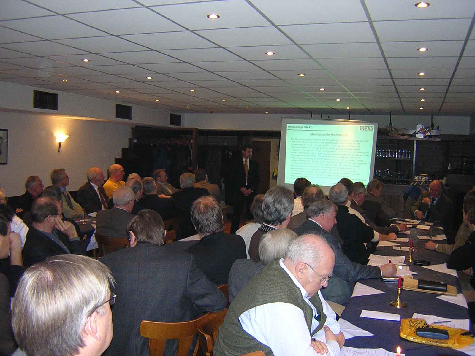 Über 60 Mitglieder begrüßte der Vorstand des BV Recklinghausen zur diesjährigen Jahreshauptversammlung des RDB. In einem hochinteressanten Fachvortrag referierte Herr Bittner von der DSK und stellte uns mit dem neuen GH 42 Hobel, technisches Know How der heutigen Gewinnungstechnik vor. Für diese neue Hobeltechnik sind, von der Antriebstechnik für Panzer und Hobel, über die Ausbausteuerung,-- eigentlich die gesamte Ausrüstung mit mechanischen und elektrischen Komponenten, Neukonstruktionen speziell auf diese neue Hobeltechnik zugeschnitten. Größere Antriebsleistungen für Panzer und Hobel in Verbindung mit intelligenten Steuerungs- u. Regelungsverfahren sowie sensorische Bauteile zur Erkennung der Kohlenhärte ermöglichen Leistungssteigerungen von über 100% in mittleren und kleineren Mächtigkeiten, selbst bei harter Kohle. Bergbau - ein Hightech – Unternehmen mit modernster Technik für nationalen und internationalen Einsatz. Ein beeindruckender Vortrag welcher erst nach anschließenden Fragen und Diskussionen seinen Abschluss fand. Hans Günter Hennemann bedankte sich im Namen aller Teilnehmer mit einem kleinen Präsent. Zu Beginn der eigentlichen Mitgliederversammlung gedachten wir in einer Schweigeminute den verstorbenen Kameraden des vergangenen Jahres. Der nächste Tagesordnungspunkt war die Nachehrung von Jubilaren aus dem Jahre 2005. Bisher erfolgte die Nachehrung jeweils im Folgejahr zum Herbstfest. In diesem Jahr wollten wir unseren Jubilaren, welche beim Herbstfest verhindert waren, die Nach-Ehrung bei der Jahreshauptversammlung ermöglichen. Acht Jubilare haben die Einladung zur Nachehrung wahrgenommen und wurden von den Vorsitzenden H.G. Hennemann und H.G. Sorger für ihre langjährige Treue als Mitglieder- und Berufsjubilare geehrt.