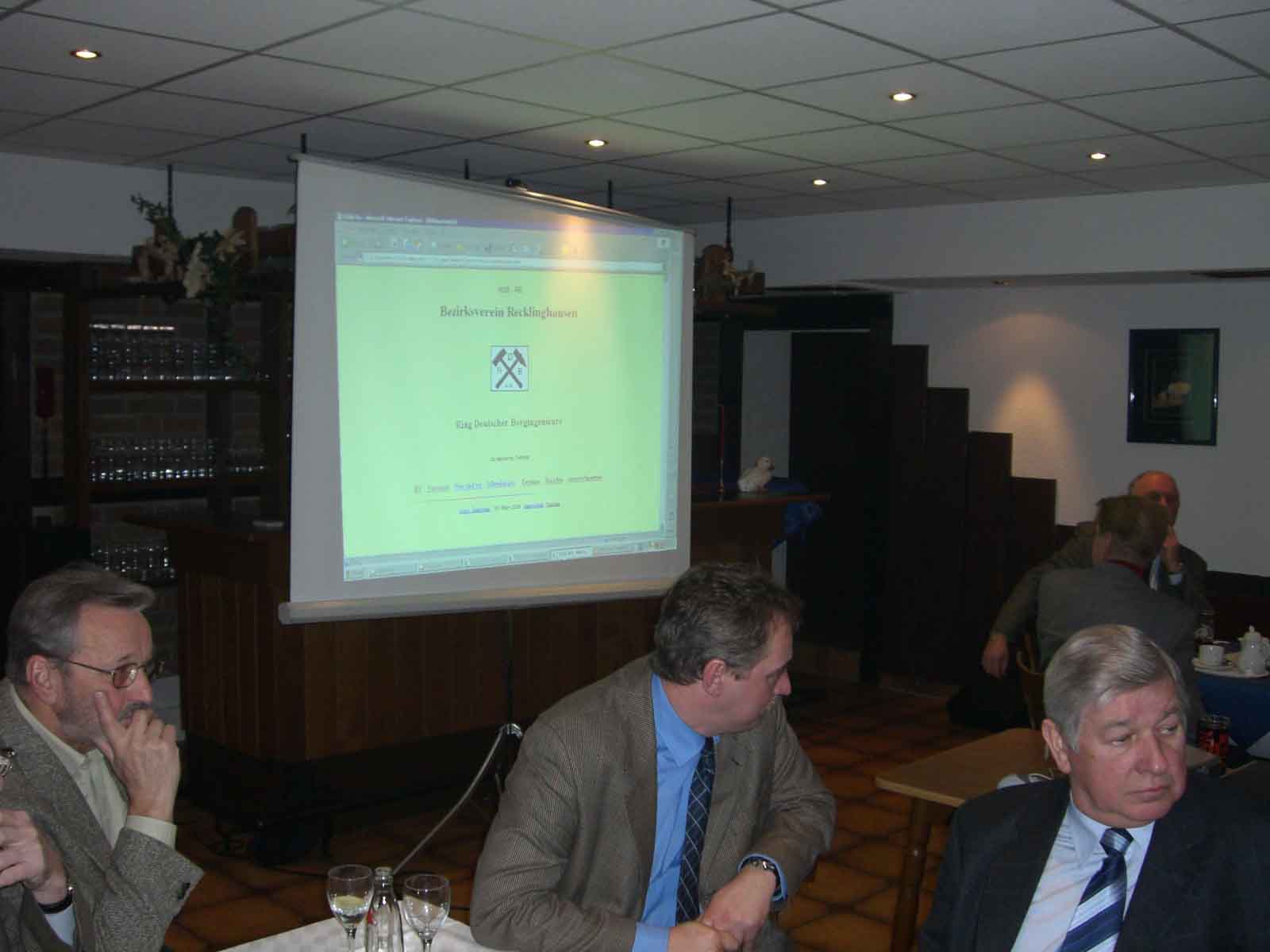 Aktivitäten, Exkursionen, Stammtischen und Besonderheiten. Das Jahresprogramm 2006, wieder mit reizvollen Unternehmungen ausgestattet, wurde von H.G. Hennemann vorgestellt. Mit dem Internet – Auftritt des BV Recklinghausen wurde nun eine interessante Neuigkeit vorgestellt. Man unterschätzt die Anzahl der Mitglieder welche heute selbstverständlich das Internet nutzen. Hier haben wir nun jederzeit Gelegenheit aktuelle Informationen des BV- RE abzurufen. Unser Kamerad Klaus Pirsig zeigte uns mit Laptop und Beamer die verschiedensten Möglichkeiten. Obwohl noch im Aufbau begriffen konnten wir auch jetzt schon die vielseitigen Anwendungsbereiche erkennen. Hiermit sind wir neben dem Hauptvorstand mit der Geschäftsstelle sowie einigen anderen BV`s ebenfalls online! Klaus Pirsig hat viel Zeit und Mühe investiert, um dieses Internetportal für den BV einzurichten. Dafür ein herzliches Dankeschön. Hier die Adresse : www.rdb-re.de O.W. |